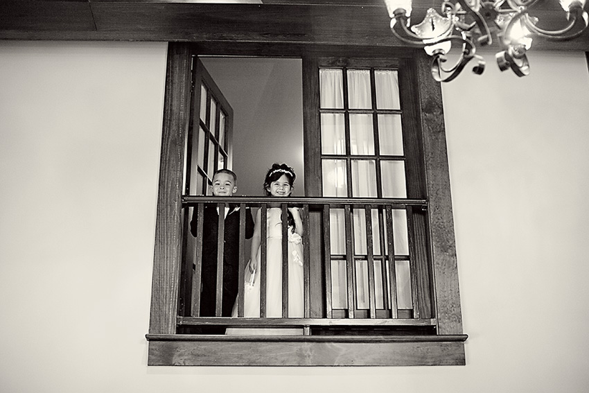 The flower girl and ring bearer, ready and waiting for their moment to walk down the aisle!