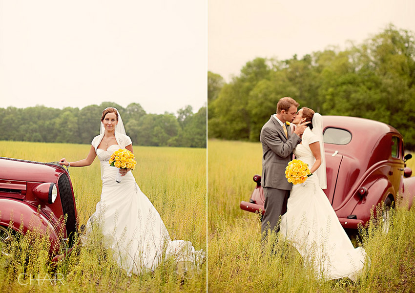 Uncle Joel’s car was puuurfect for photos. And then this field behind the Bed&Breakfast? A ‘cannot go wrong’ combo! Threw in a gorgeous bride and groom and a stellar color scheme. LOVE it!