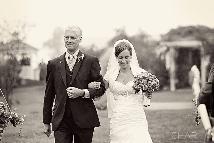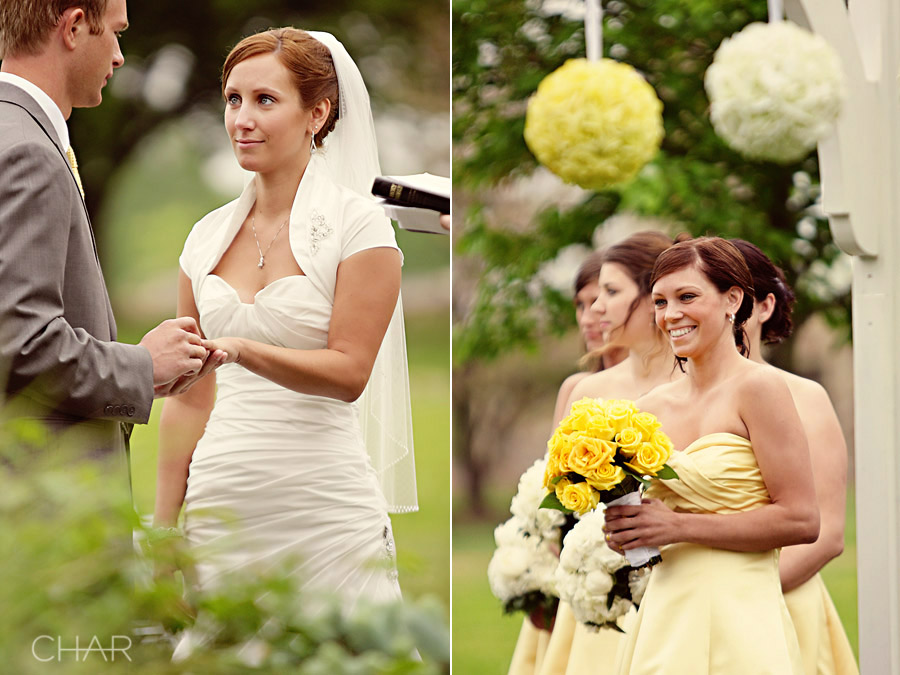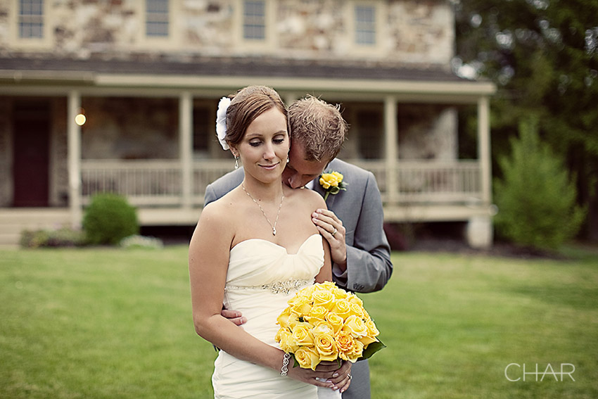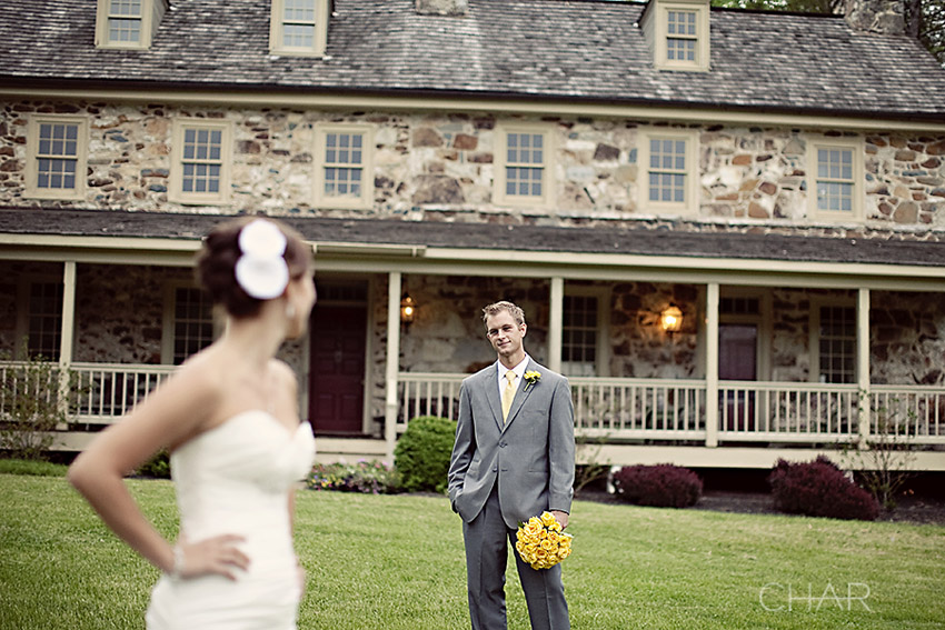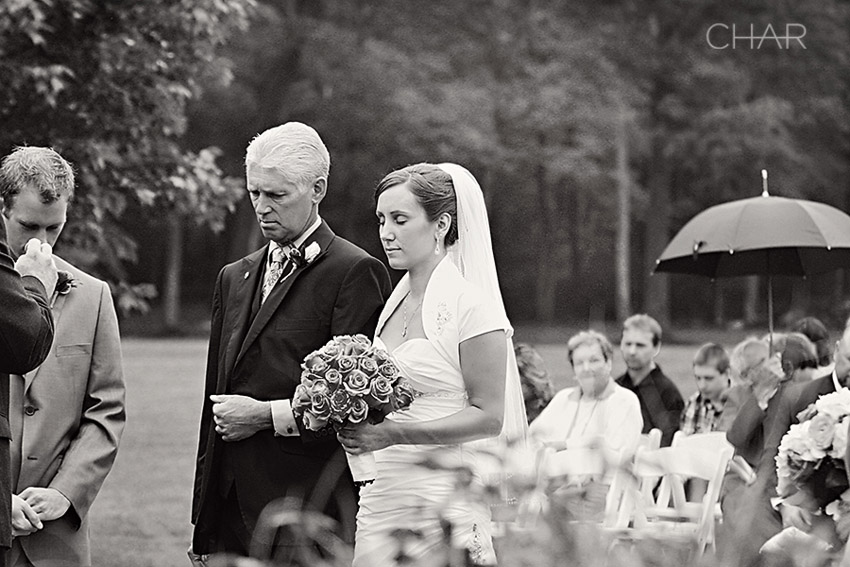 If you were to take a step back and look in, this is what you would have observed….A winding driveway leading up to an old stone Bed & Breakfast. Guests seated in the front lawn. A few holding up umbrellas. Music rolling through the foggy air. A serene pond creating a backdrop for the alter. Soft, muted shades of grays and yellows. Elegant yellow and white rose bouquets. A groom carefully escorting the mothers across the yard. One proooud daddy ready to escort his baby girl to the alter. A radiant bride with deep blue eyes and a heart so alive. And a big stone house that seemed to stand at guard watching the festivity on it’s front yard.