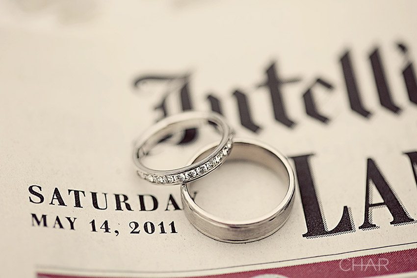 Kiki’s idea….a ring photo with the wedding date newspaper. Love!