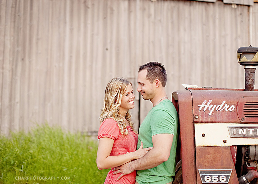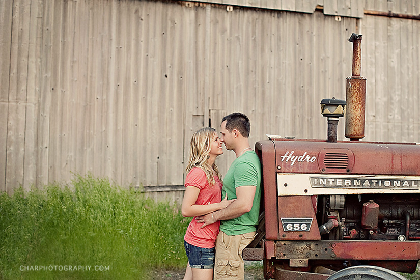 I loved how invested in this session Denae and Andy were. I communicated back and forth with Denae over email quite a few times as we tossed around location options, outfits, and props. Denae scouted out several areas until she found the perfect location..an old farm with overgrown grass, old barn, and antique tractor. Score!