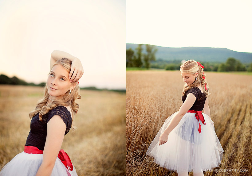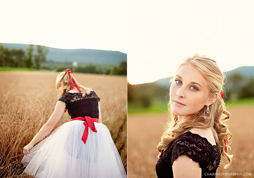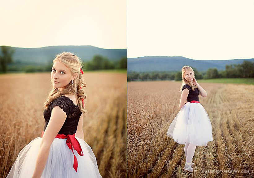 I love photographing dancers and ballerinas! I have worked with quite a few recently. Elizabeth was no exception to the fun dancers are. Elizabeth had a soft, lovely smile all throughout the session. We walked around Elizabeth’s home town and her family’s farm for the photos…even in the meadow with the cows and next to the tractor…her dad’s special request. =)