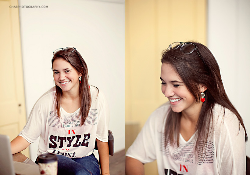 First of all, this is Lindsay. She is awesome. Happy-go-lucky and I think she might just skip through life. She assisted me on many shoots this past summer. She always showed up with a huge grin and a willingness to get right in there. She held the reflector and helped me carry gear. Helped with outfit decisions….scarf good or bad? Which earrings? Should this hat be worn this way…or this way? We lugged dressers up hills and swatted at mosquitos.(;. Lindsay is dedicated. She often drove an hour to meet me on shoots. Lindsay first contacted me by email. She told me she was hoping to intern with a photographer for her senior project. I was immediately impressed by her polite and professional email. When I met with her, I knew Lindsay was perfect for me.