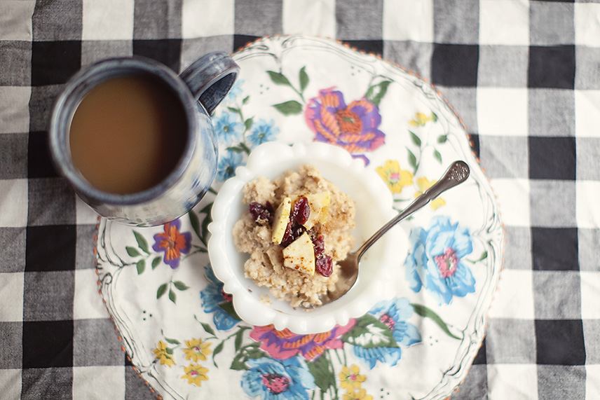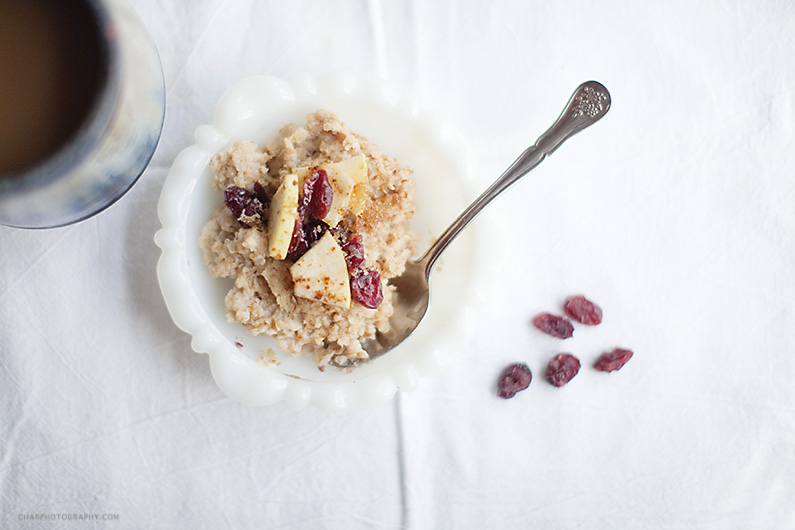 Not having to go anywhere. Yes. Winter time weak morning sunshine rays and oatmeal. With cranberries, apple chunks, and a healthy does of brown sugar. And cinnamon too. So tell me, what is winter time comfort to you?
