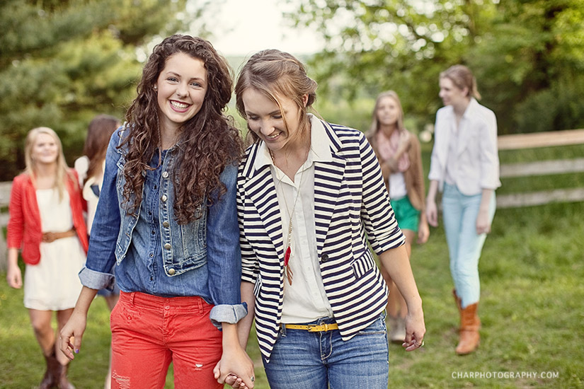 Our Senior model program is an exclusive program for 11th grade students from all over central Pennsylvania. As a senior model, these girls will be the “face” of Char Photography. The models have the opportunity to earn great prizes AND be part of the styled senior model shoot. True to who she is, GRACE styled the shoot brilliantly. Natural, relatable, playful, relaxed, sunshine, grassy field, tousled hair, fresh and natural makeup, pops of color, and a soft fashion vibe. Our goal was to capture these girls being TRUE to themselves! At the Meet and Greet, over coffee and pastries, we gave the girls all the details for the big day. Grace described her vision, showed fun examples of her own clothing, and told the girls…don’t go shopping, BRING WHAT YOU HAVE! And let me tell you, these girls rocked it out. Everybody met on a farm with a wide open field. Hilary from Bella De Salon did a wonderful job with the makeup, applying just the right amount to give a glowy, fresh feel. Charity and Janae from Lasting Impressions Salon braided, curled, and styled hair true to our vision. Grace mixed and matched the the girl’s clothing, swapped shoes, pulled in a few of her own clothing pieces, directed hair and makeup, and styled the girls beautifully. I photographed and reveled in the fun of it all. Andrea, who is awesome, also worked her camera and captured gorgeous images. Janae (my intern who I love) ran here and there, giving a helping hand, picked up lunch, carried gear up the huge hill, AND smiled.:) Angel, my dear friend, came as a support for me and helped organize the day so it flowed smoothly and peacefully. It was a BIG day…and I felt so blessed to be able to collaborate with all these folks.