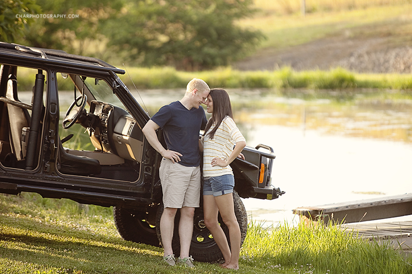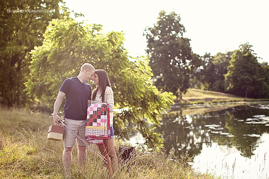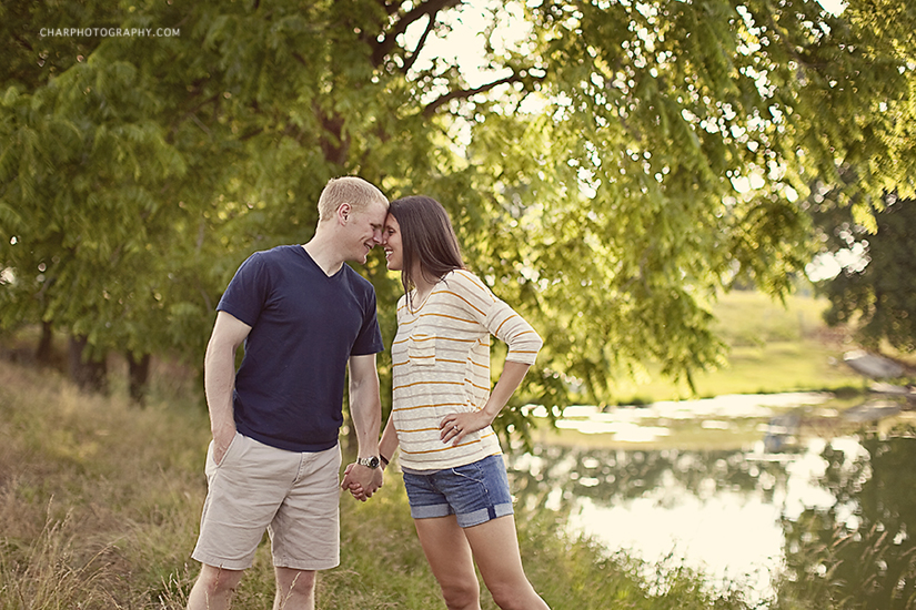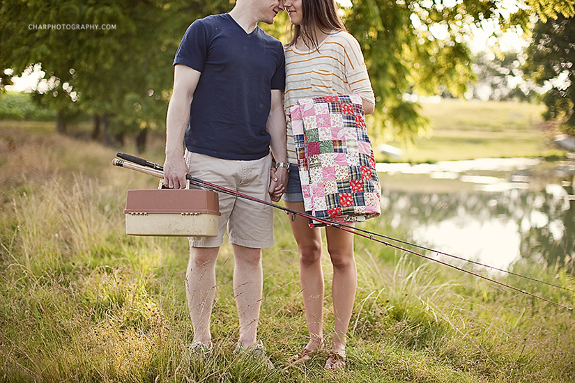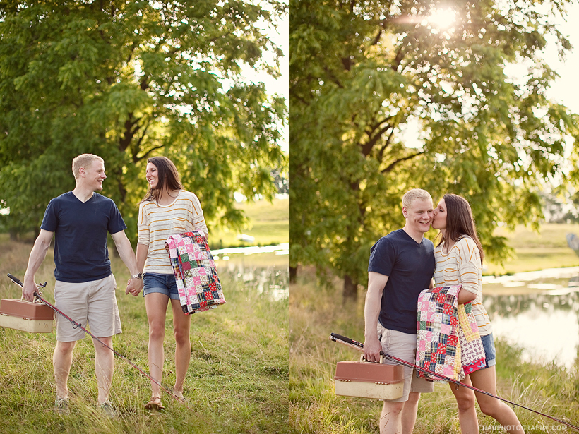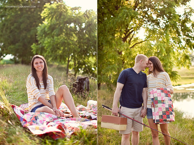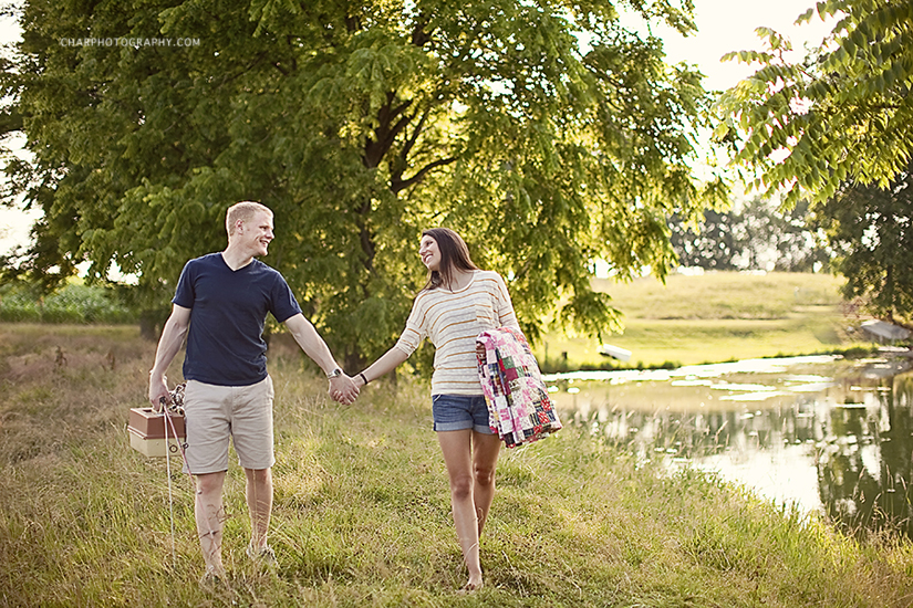 A few weeks ago I had the wonderful opportunity to meet and photograph Stacey and Dustin. There is nothing I love more than a photo session in the sunshine and grass with two people that are relaxed, easy going, and just want to have a good time! Stacey and Dustin love anything outdoors…including fishing. When Stacey suggested styling the shoot around this…I loved it! I searched and searched for a pond that was overgrown and not too manicured. Who knew that would be so hard to find?? Turns out, I found a pond that was literally (almost) a stone’s throw away from my house. Haha:) It was way back a long field lane. I knew the pond was there…but never actually saw it since it is hidden from view. When I asked permission and scoped it out…I knew it would be perfect for Stacey and Dustin. For the record…this location was the closest I have ever worked to my house!